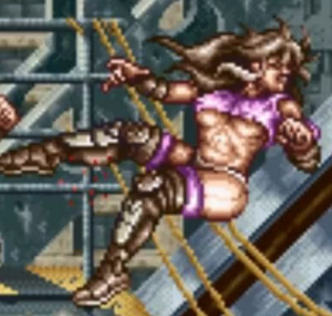 アイレムの人気ベルトアクション、アンダーカバーコップに登場する女戦闘員フォックス。