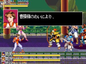 本作の3面と4面の間に出てくる、曹操の親衛隊的な敵将の女三人組、美美、美冴、美鈴の3人組も魅力的でしたね。