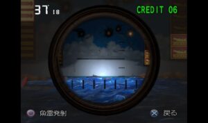 本作は、潜水艦の潜望鏡を覗きながら海上を航行する敵戦艦を魚雷で攻撃するシステム。